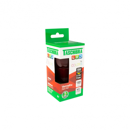 A Lâmpada LED Bulbo Taschibra 5W Vermelha é ideal para quem busca iluminação decorativa eficiente com impacto visual. Garanta a sua para ambientes internos com estilo e atmosfera diferenciada!